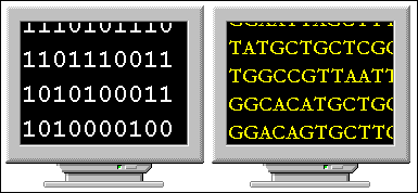 Skärmsläckare med ettor och nollor eller DNA-sekvenser.