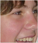 Med CleanSkinFX blev resultatet det här. Jag använde "Enhance pink" och "Double Clean". Håret och ögonen har fått ny skärpa. Huden är slätare – ådror och röda småprickar framträder inte lika tydligt. Skuggan i "skrattvecket" från näsan till mungipan har mjukats upp betydligt, och blixtblänket stör inte längre. Och – det kanske viktigaste – flickan tycker om porträttet!