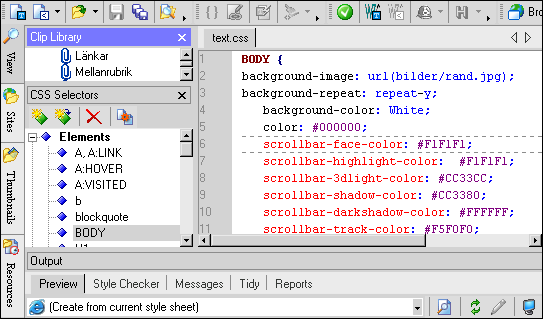 Det här är det enligt min uppfattning bästa verktyget för att skapa stilmallar när man inte vill skriva koden själv. I förgranskningsfönstret ser du direkt hur ändringar i koden kommer att påverka sidornas utseende.