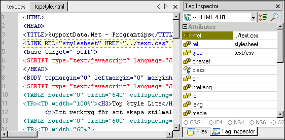 I den registrerade Pro-versionen kan du automatiskt koppla stilmallen till valda HTML-sidor. Den kan även användas som en väl fungerande HTML-redigerare.