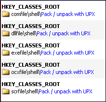 Om du vill ha UPX tillgängligt från Utforskarens högerklicksmeny, klickar du på "Shell Extensions" och väljer vilka filer som skall kunna komprimeras därifrån.