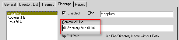 Filrektanglarna är i sin tur samlade så att alla filer i en mapp ligger tillsammans och låter mappen bilda en ny rektangel. Mappen med dess undermappar och filer får därmed en yta som är proportionell mot storleken på mappen, på dess undermappar och på mappen/mapparna som den ligger i. I WinDirStats "Extension List" ser du vilka filändelser som motsvaras av de olika färgerna. När du klickar på ett mappnamn i "Directory List" markeras denna mapp med en vit ram i Treemap. Det här arrangemanget gör att du mycket lätt hittar de stora filerna som tar mycket hårddiskutrymme. När du klickar på en sådan fil visar "Extension List" vilken filtyp det är, samtidigt som statusraden visar filens hela sökväg och filen blir markerad i "Directory List", där det fungerar likadant som i Utforskarens vänstra fönsterhalva. Om du markerar en fil i Treemap och högerklickar får du en rad valmöjligheter. Bland annat kan du kopiera filens sökväg och öppna Utforskaren på filens plats. Markerar du filen i Directory List har du ännu fler möjligheter, som att öppna filen eller radera den för gott eller till Papperskorgen. KommandoradenEn mycket bra funktion i WinDirStat är att kommandoraden kan användas från både Treemap och "Directory List" och att du kan skräddarsy DOS-kommandon som utför exakt det du vill ha gjort.