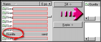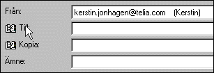 Här ser du en del av detta fönster. När du klickar på "Till" visas namnen i din adressbok.