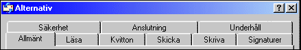 "Alternativ" på menyn "Verktyg"Här får du upp ett nytt fönster med en rad flikar, och det är här du bestämmer hur just ditt Outlook Express skall fungera.