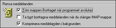 Här finns två alternativ som du bör utnyttja. Genom att regelbundet tömma "Borttaget" sparar du plats på hårddisken. Samma sak gäller för valet "Komprimera meddelanden i bakgrunden". |
